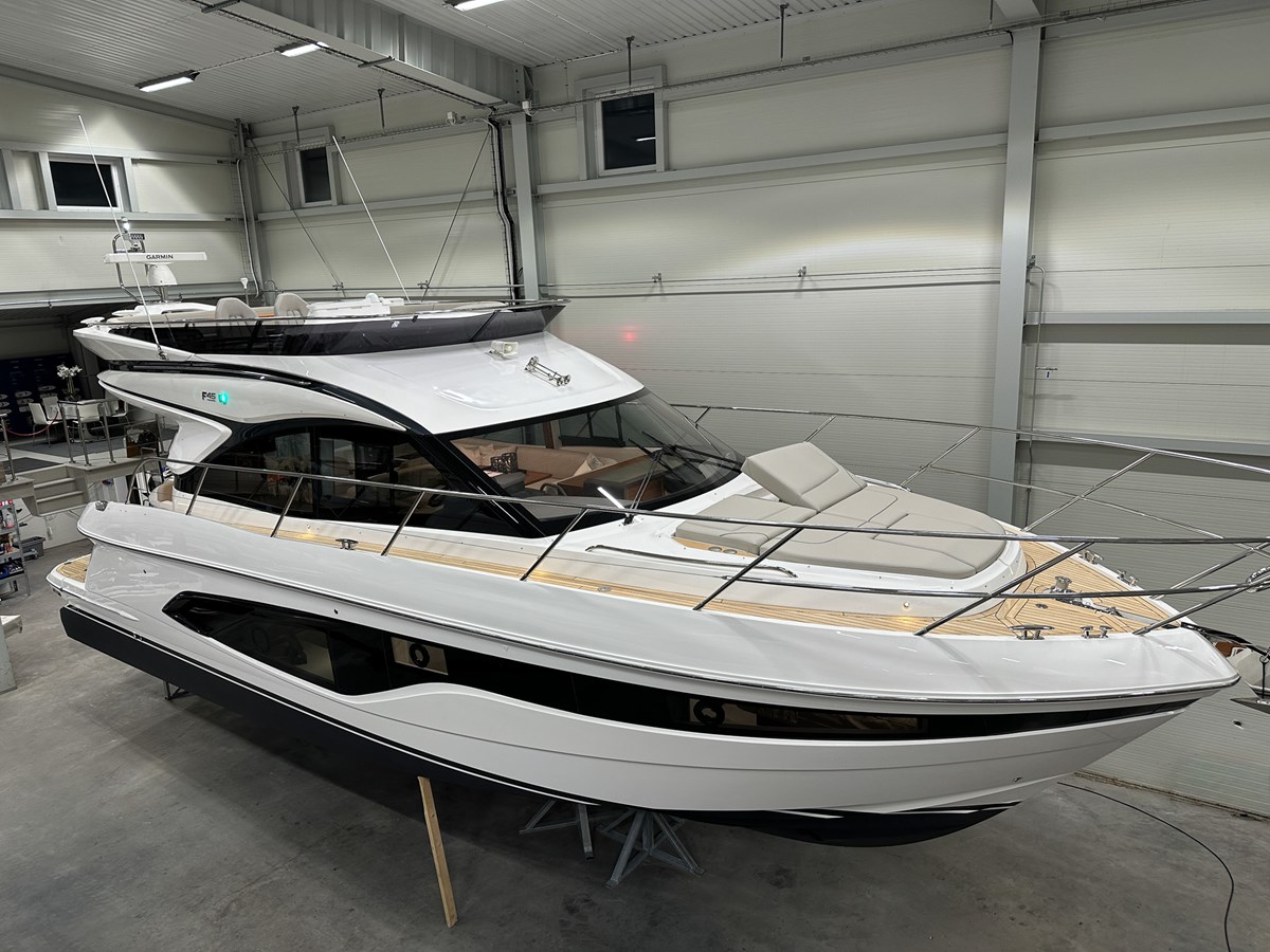 2024 year model • Twin Volvo IPS 650 (2 x 480hp each) diesel engines • Volvo Joystick control • Assisted Docking • Dynamic Positioning System / DPS • Automatic trim system • Variable bowthruster with hold • Hydraulic platform • Walnut interior wood, satin finish • Saloon berth conversion • Heated bathroom floors • Washed/dryer • Dishwasher • Full teak • ONAN generator • BBQ in wetbar • 4x Garmin Glass Cockpit 16 inch chartplotters integrated with Volvo autopilot • Radar • Demist • Heating
