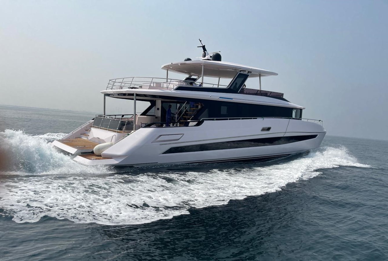 Designed GRP hard top supported by exclusive stainless steel fins with integrated glass and Columns